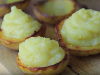 Сега ще ви разкрием как се правят. Изберете малки картофи, сварете ги и охладете. После срежете на половинки и издълбайте вътрешността.