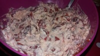 Една разкошна салата, в която ще се влюбите от първата хапка. Вместо да купувате катък или някакъв друг млечен продукт, в който няма как да сте сигурни какво има, по-добре си го пригответе сами от домашно изцедено кисело мляко и натрошено сиренце. Лесно и в пъти по-вкусно!