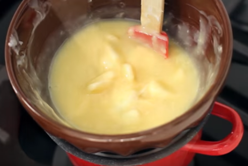 слаб огън на водна баня. Към тях се добавя маслото и се разбърква отново.