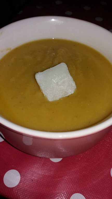 Ако искате да придадете на супата екзотичен привкус, при сервиране добавете една супена лъжица кокосово мляко или едно кубче замразено кокосово мляко (ако сте избрали такъв начин за съхранението му).